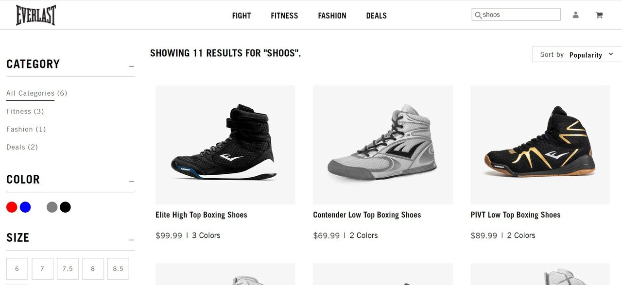 Spelling tolerance on Everlast’s site.