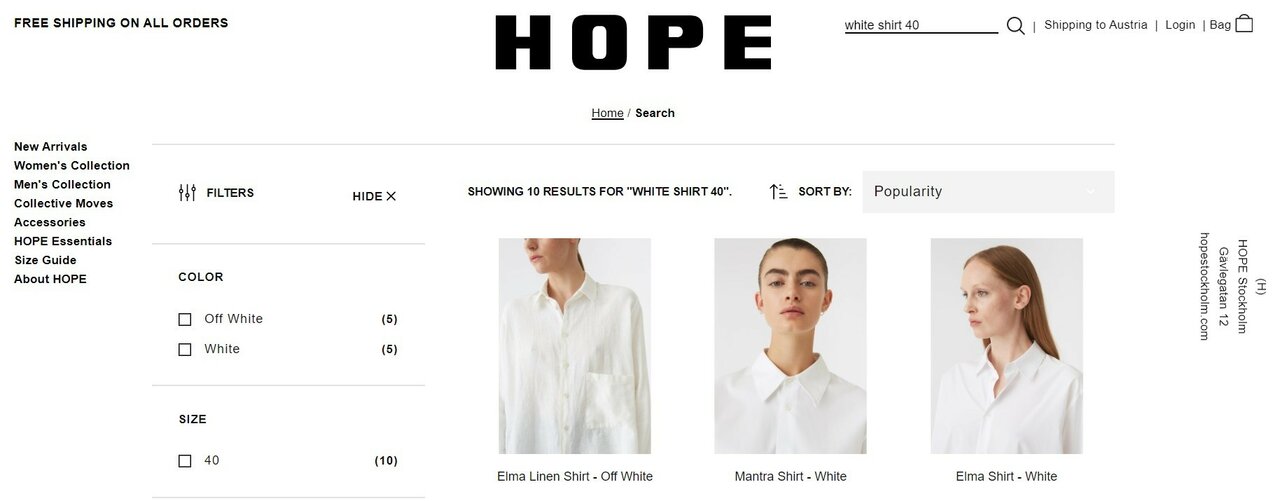 Take, for example, the search term “White Shirt 40.” Using NLP, an excellent site search will be able to tell the difference between every single word, ensuring accurate results. It knows “White” is the attribute you’re looking for, “Shirt” is the product and “40” is the size.